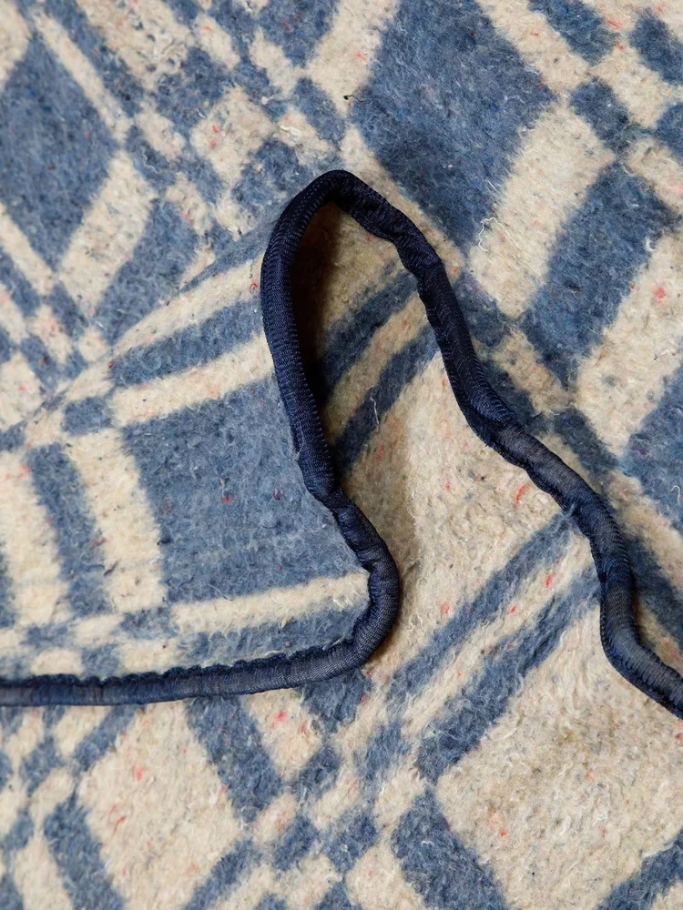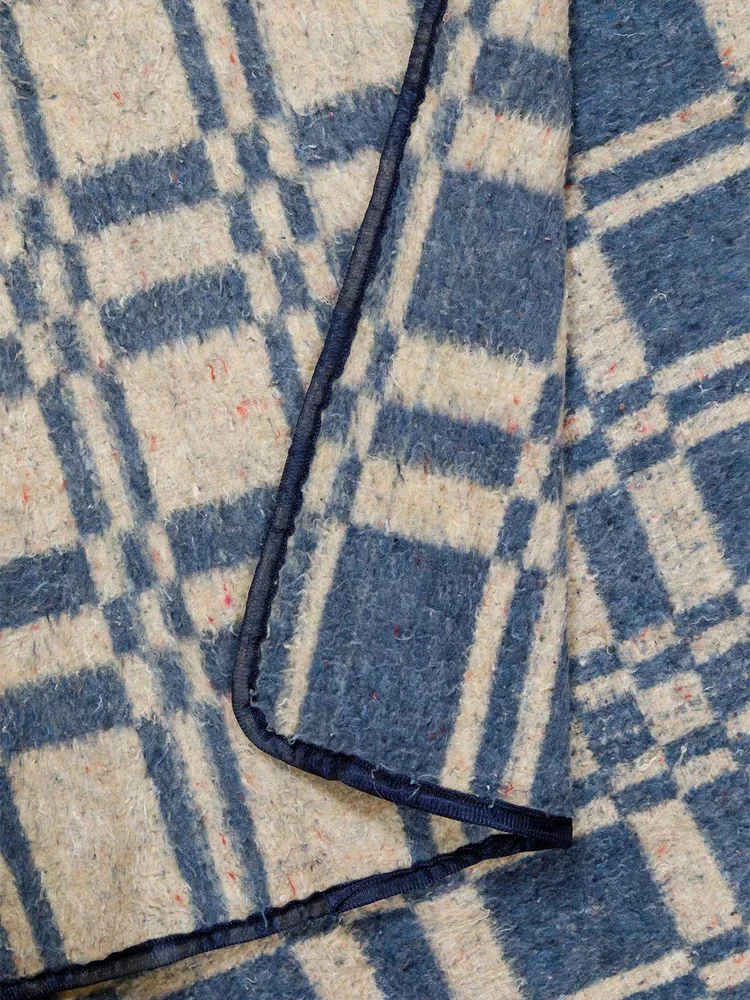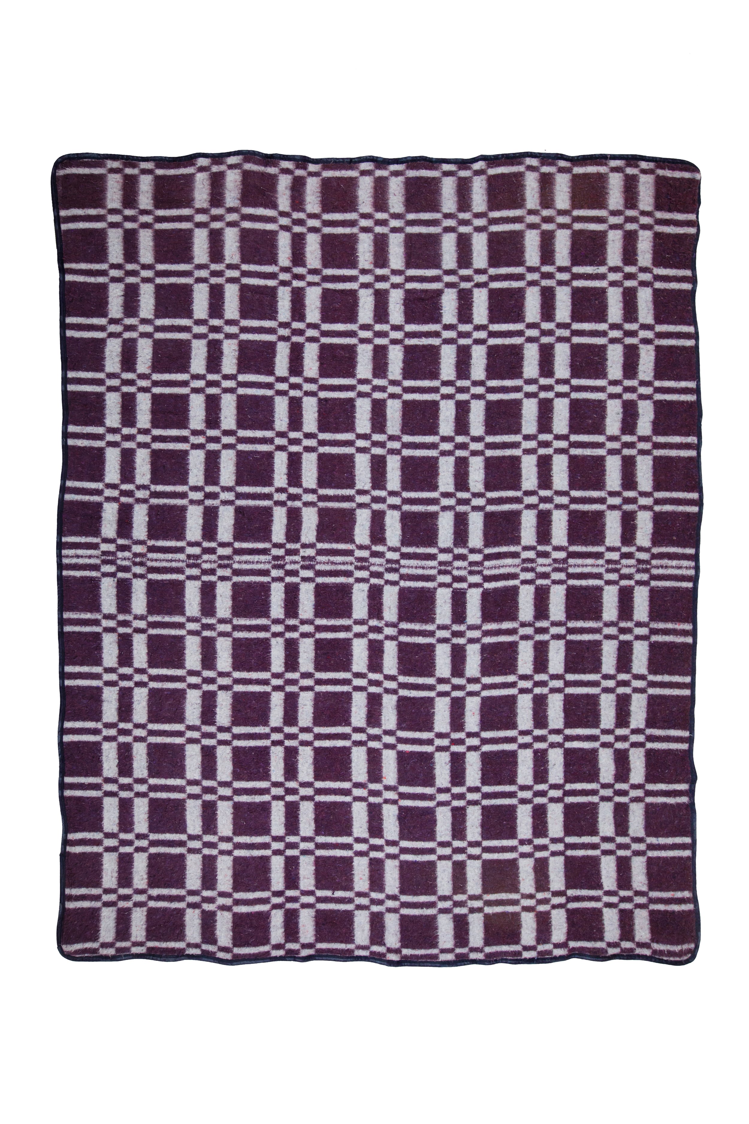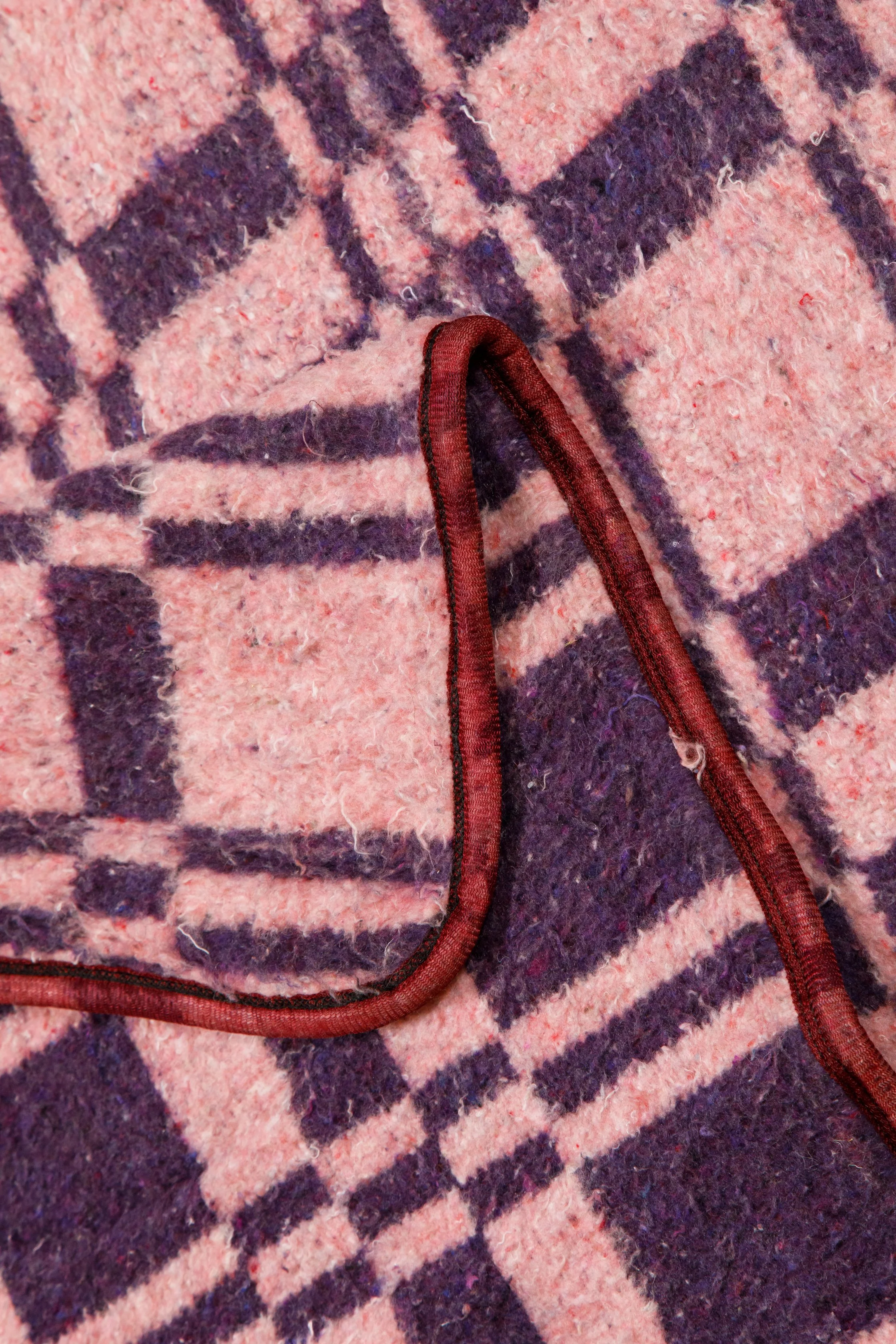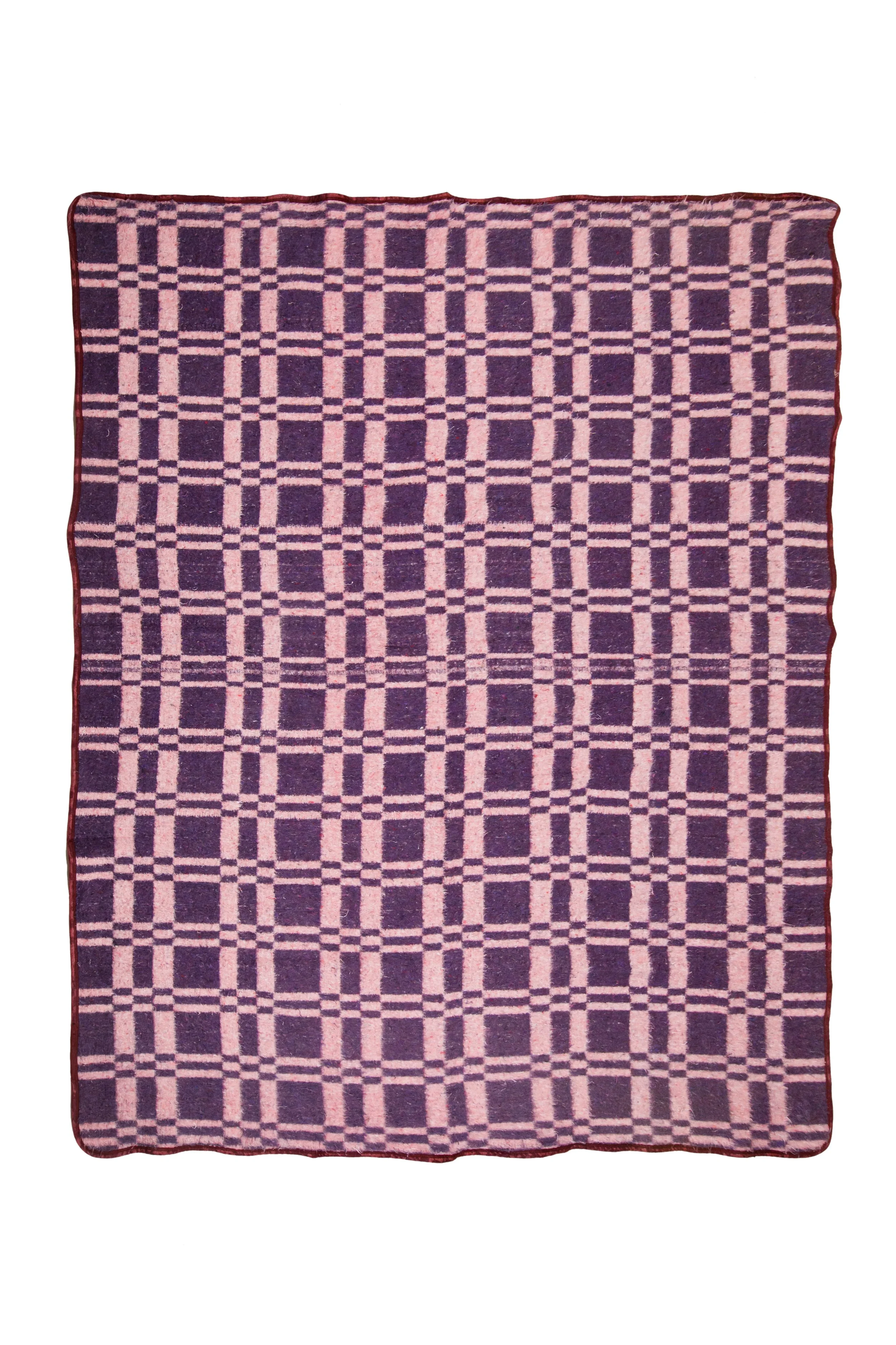 A generously sized, luxuriously soft blanket crafted from a premium wool blend, ideal for relaxed indoor lounging or outdoor use. Featuring a check pattern in deep grape purple and smoky mauve with playful multicolour flecks, finished with dark inky blue satin binding, this versatile blanket is reversible, letting you switch base colours to suit your mood or décor.
